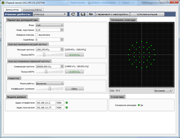 вид модуляции: QPSK, 8PSK, 16APSK 12,4;
